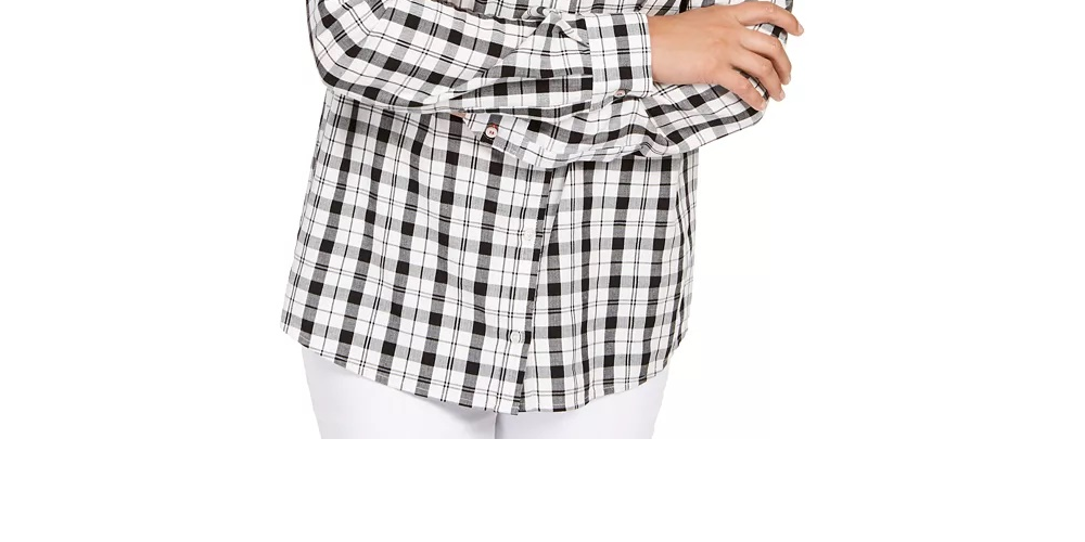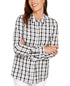 Camisa xadrez branca feminina Charter Club com botões e punhos, tamanho médio, branca, tamanho médio
