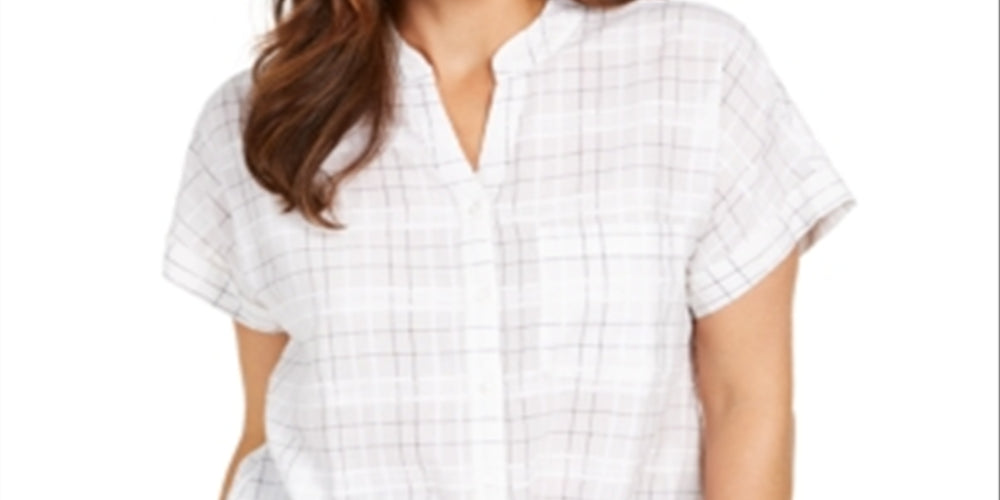 Blusa feminina Charter Club com estampa de janela e amarração na cintura (combinação P branco brilhante) Lavável à máquina Estilo de manga curta; Tipo de tamanho da blusa; Regular