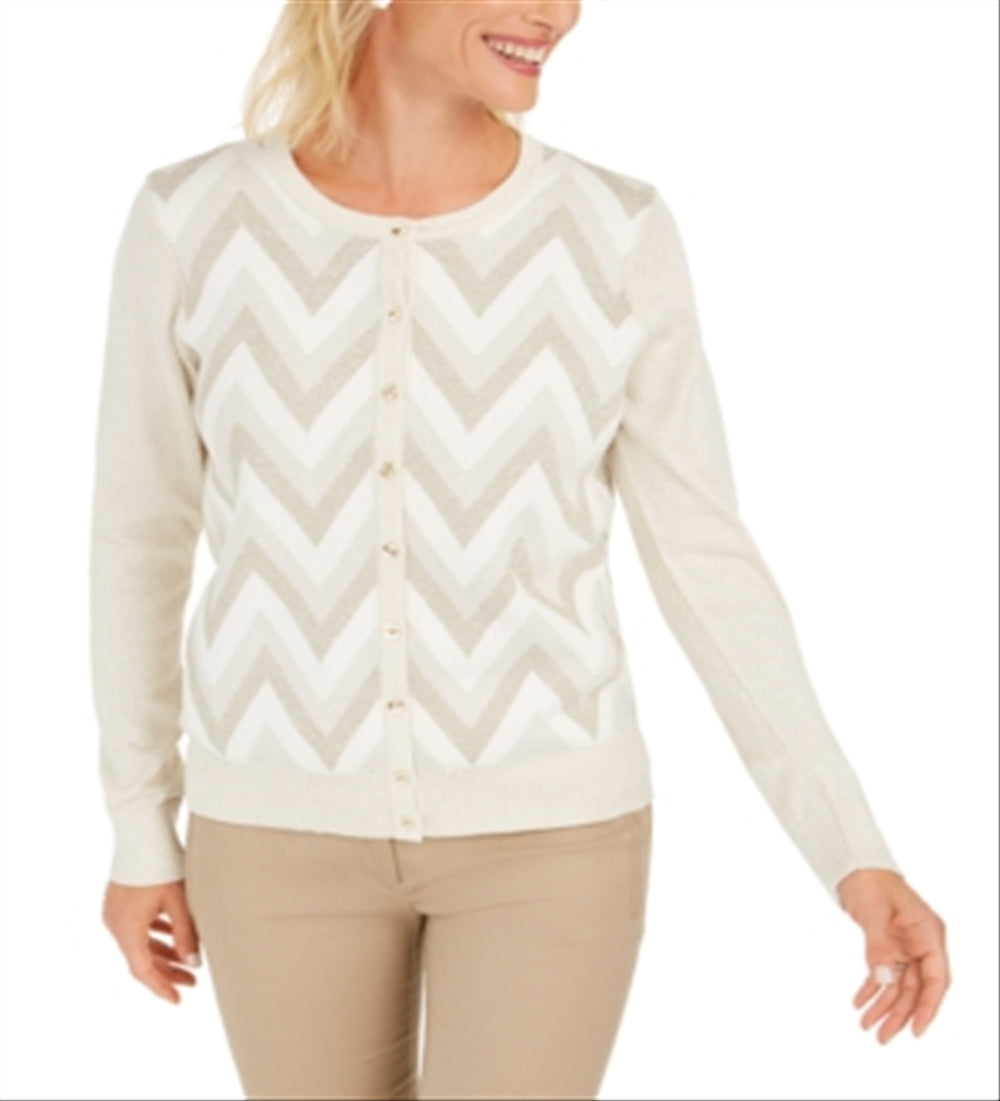 Um padrão em zigue-zague energiza este cardigan essencial da Charter Club | É um toque final que vai aquecer seu visual a qualquer dia
