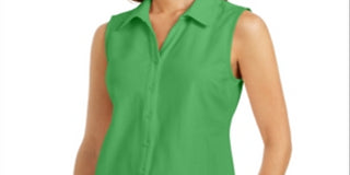 Camisa feminina sem mangas Charter Club Cotton Piquet, verde, tamanho 6