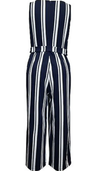 Charter Club Macacão Feminino Stretch com Zíper, Cinto, Listrado, Sem Mangas, Decote em V, Festa, Perna Larga, Azul, Tamanho X-G