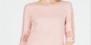 Top de crochê feminino Charter Club com manga rosa, tamanho pequeno G