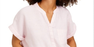 Camisa feminina Charter Club de linho com botões frontais e amarração, rosa, tamanho médio