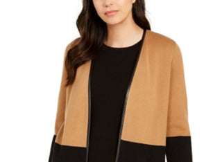 Cardigan feminino Charter Club Milano Cotton Colorblocked marrom tamanho grande