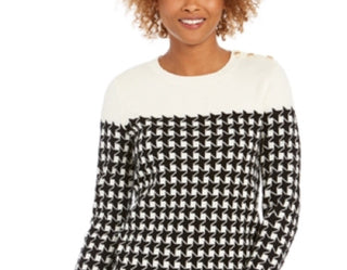 Suéter feminino Charter Club com gola redonda e estampa pied-de-poule colorblock, preto, tamanho pequeno
