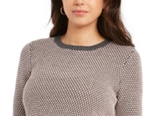 Suéter feminino Charter Club com estampa canelada, manga comprida, gola redonda, cinza, tamanho grande