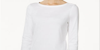 Charter Club Blusa feminina de algodão Pima com gola canoa, branca, tamanho 2XL