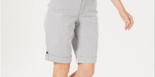 Bermuda feminina listrada com controle de barriga Charter Club cinza tamanho 12 pequeno