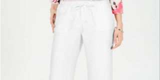 Calça feminina Charter Club de linho com cordão, branca, tamanho pequeno G