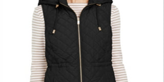 Colete acolchoado com capuz e tecido Charter Club feminino, preto, tamanho pequeno