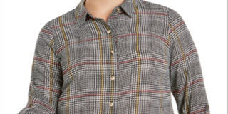 Camisa xadrez feminina Charter Club Plus com mangas dobradas, preta, tamanho 3XL
