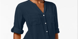 Camisa utilitária feminina Charter Club com decote dividido, azul, pequena e pequena