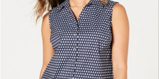 Camisa feminina com estampa de veleiro Charter Club, azul, tamanho 10, pequena