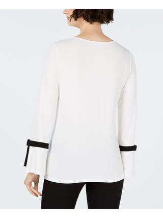 Charter Club Blusa feminina lisa de manga comprida com decote em joia, branca, tamanho médio