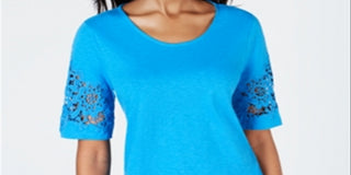 Camisa feminina Charter Club de linho com amarração frontal, azul, tamanho pequeno e pequeno