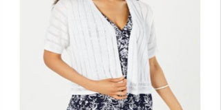 Cardigan feminino Charter Club Pointelle com frente aberta, branco, tamanho pequeno GG
