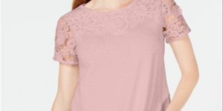 Camiseta feminina Charter Club de algodão com renda e detalhes embelezados, rosa, tamanho pequeno