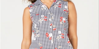 Blusa xadrez floral sem mangas feminina Charter Club, branca, tamanho 6