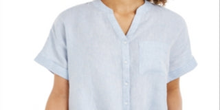 Camisa feminina Charter Club de linho com botões frontais e amarração, azul, tamanho pequeno