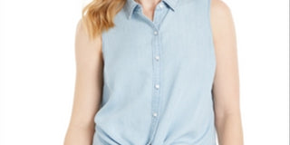 Camisa feminina sem mangas Charter Club de algodão com bainha amarrada, azul, tamanho 10
