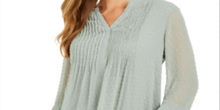 Charter Club Blusa feminina texturizada com babados duplos, verde, tamanho pequeno