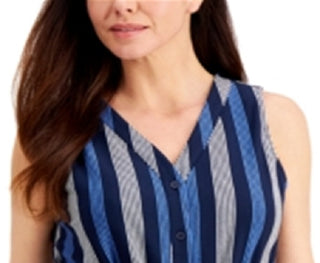 Top listrado feminino Charter Club com amarração na cintura, azul, tamanho XX-G
