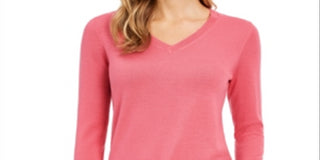 Suéter feminino de lã merino com botões e decote em V, tamanho XS, rosa, Charter Club