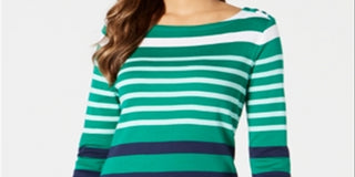 Blusa feminina Charter Club de algodão Pima com listras e botões nos ombros - Verde Killala Combo Verde Tamanho XS