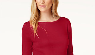 Charter Club Top feminino com decote canoa e blocos de cores, vermelho deslumbrante, tamanho médio