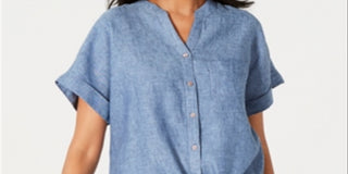 Camisa feminina Charter Club Petite Linen com amarração frontal, azul, tamanho PXL