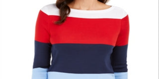 Charter Club Blusa feminina com decote canoa e blocos de cores, vermelha, tamanho extragrande
