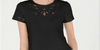Camiseta feminina de algodão com recorte Charter Club, preta, tamanho extragrande