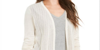 Cardigan feminino Chevron Pointelle da Charter Club, marrom, tamanho X-S