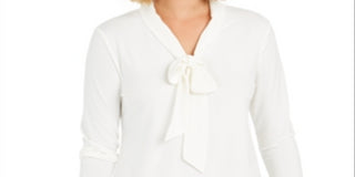 Charter Club Blusa feminina de crepe com gola amarrada, branca, tamanho pequeno