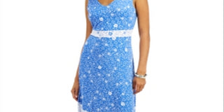 Vestido floral feminino Charter Club sem mangas azul tamanho grande
