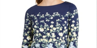 Blusa feminina Charter Club com estampa floral e decote canoa, azul, tamanho pequeno