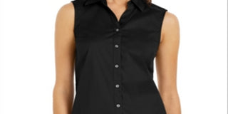Blusa feminina Charter Club com botões frontais, preta, tamanho 14