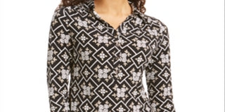 Camisa polo feminina Charter Club com estampa de manga 3/4, preta, tamanho grande