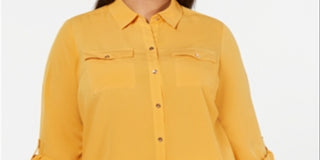 Camisa feminina plus size com botões frontais Charter Club, amarela, tamanho 0X