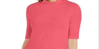 Camiseta feminina Charter Club de algodão com gola alta, cor coral Tuscon, tamanho P