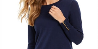 Suéter feminino Charter Club de lã merino com punhos abotoados e gola redonda, tamanho grande, azul