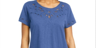 Camiseta feminina de algodão com recorte Charter Club, azul, tamanho 2XL