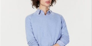 Suéter feminino de cashmere com gola redonda e overlock Charter Club, azul, tamanho GG