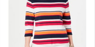 Charter Club Petite Cotton Listrado Gola Canoa Top Rosa Tamanho Petite G