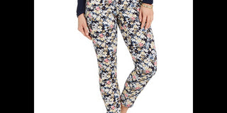 Calça jeans skinny Bristol estampada floral Petite Club Charter, preta, tamanho 2P
