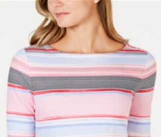 Charter Club Blusa feminina estampada com punho e gola redonda, tamanho médio, rosa