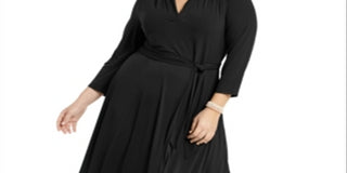 Vestido feminino plus size com decote em V e cinto, preto, tamanho 0X