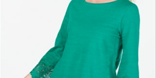 Top feminino Charter Club com acabamento em renda de algodão, verde, tamanho pequeno e pequeno
