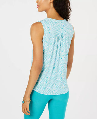 Charter Club Top feminino sem mangas estampado com decote plissado rosa tamanho pequeno