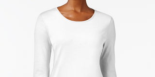 Camiseta feminina de manga comprida em algodão Pima Charter Club, branca, tamanho X-G